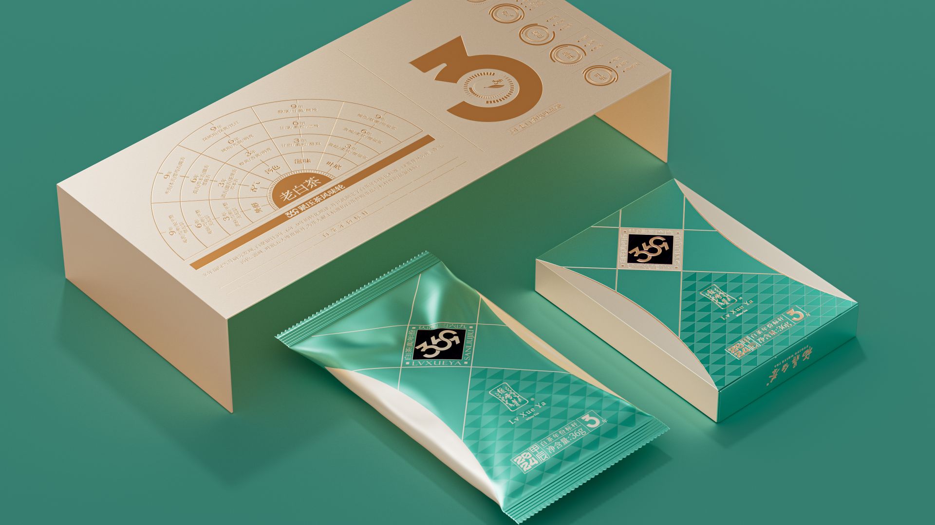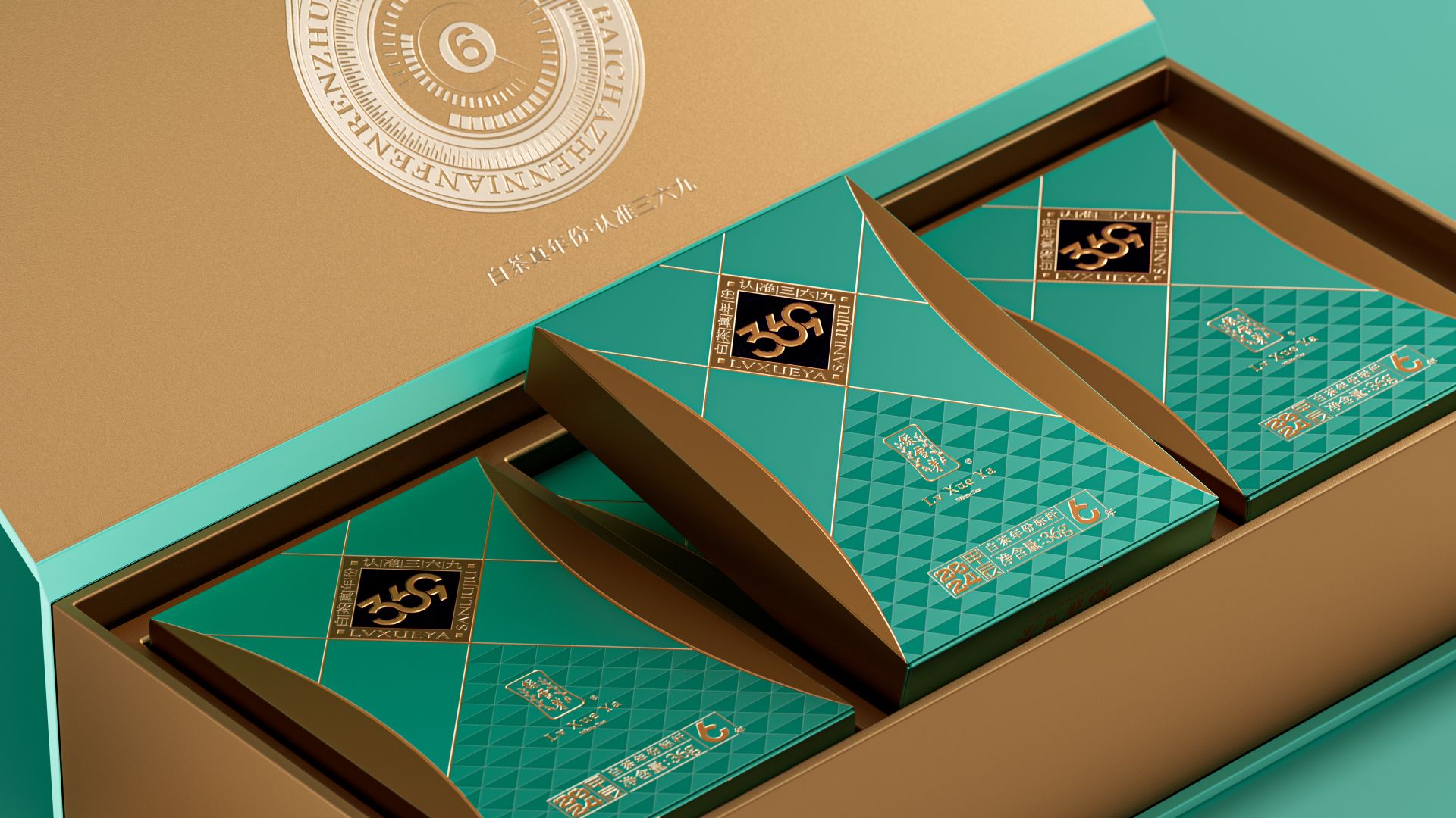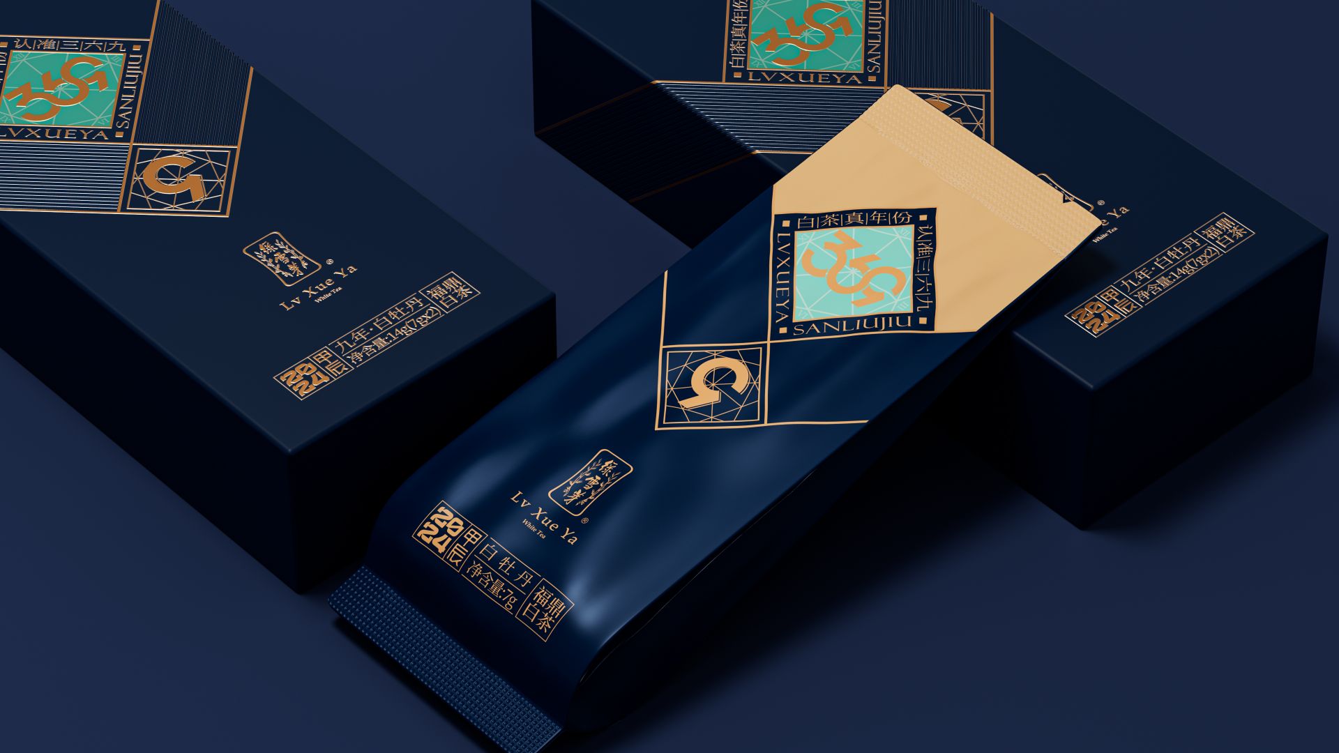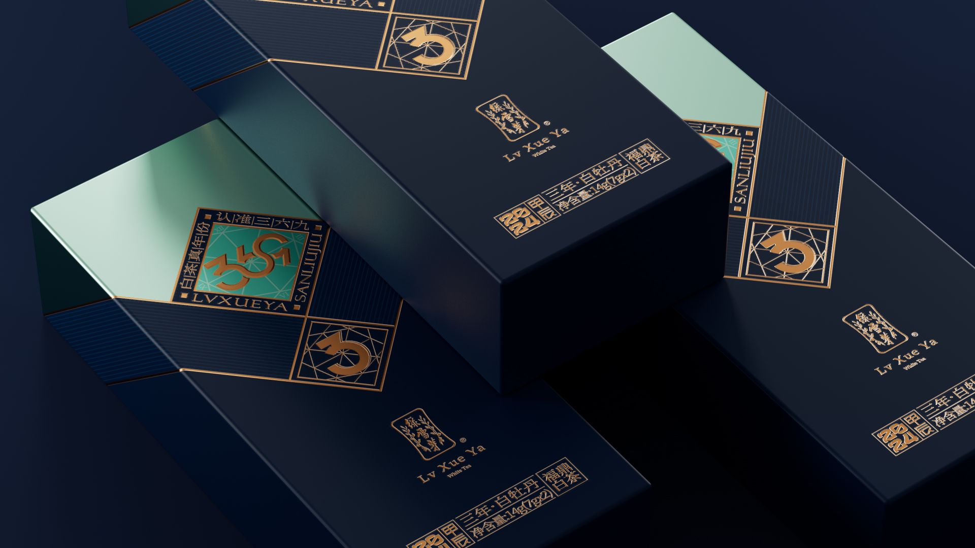我们为绿雪芽精心打造出一款在现代语境下具有划时代意义的包装。369系列是绿雪芽首创老白茶3年、6年、9年的年份标杆。盒面运用现代极简设计,直观表达数字符号,在品牌蓝的衬托下更加耀眼。每一个数字都仿佛有生命,诉说着白茶历经3、6、9 年的沉淀与凝练。字形设计巧妙借助数字的线性相似处与印章的几何图纹相组合,来表达光阴的意涵。那古朴的印章形态和细腻纹理,如同庄重的守护者,是时间的纪年,更是岁月的鉴证。它如同一份被加盖时间印记的宝藏,等待着懂它的人去开启、去品味。