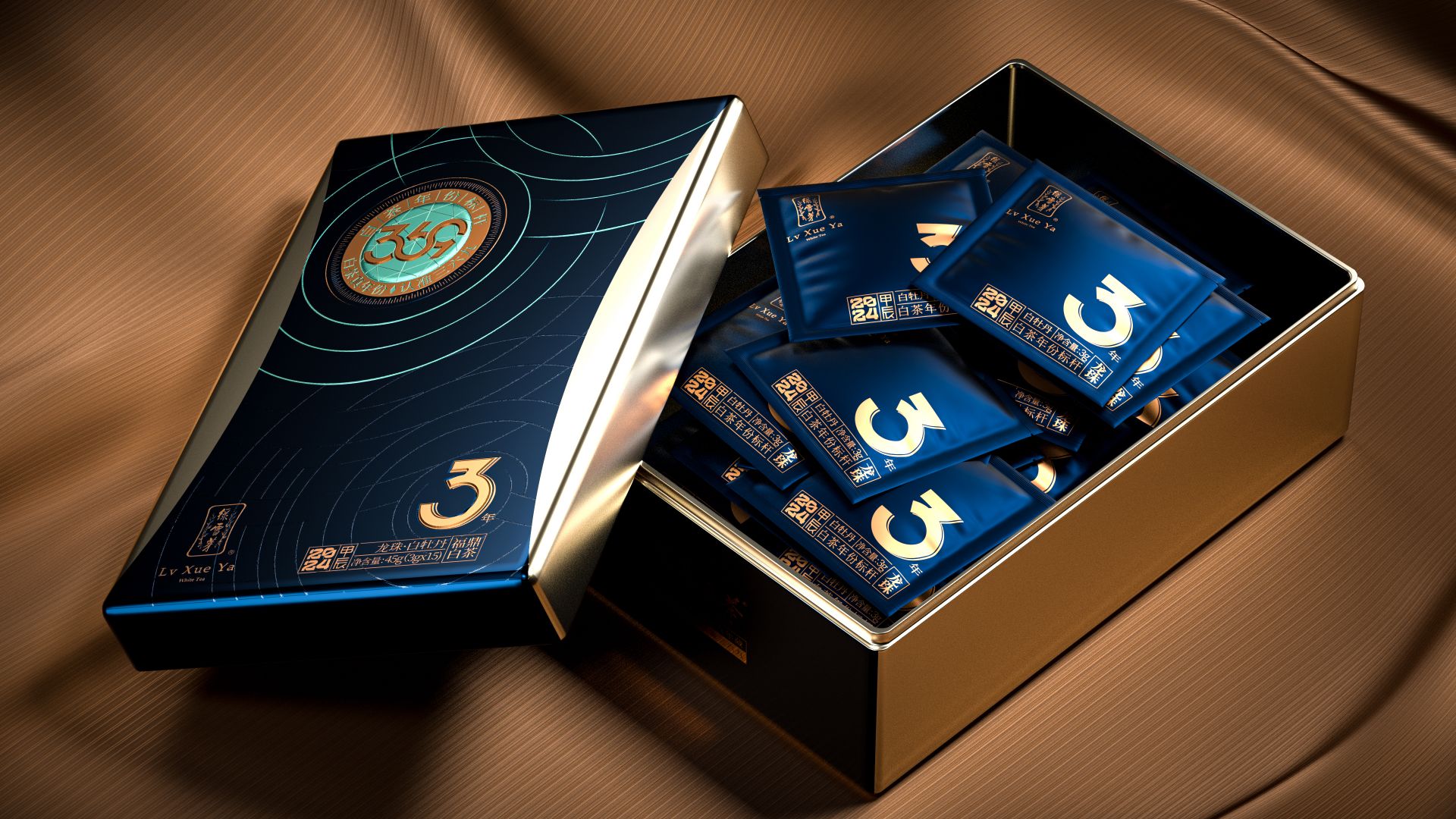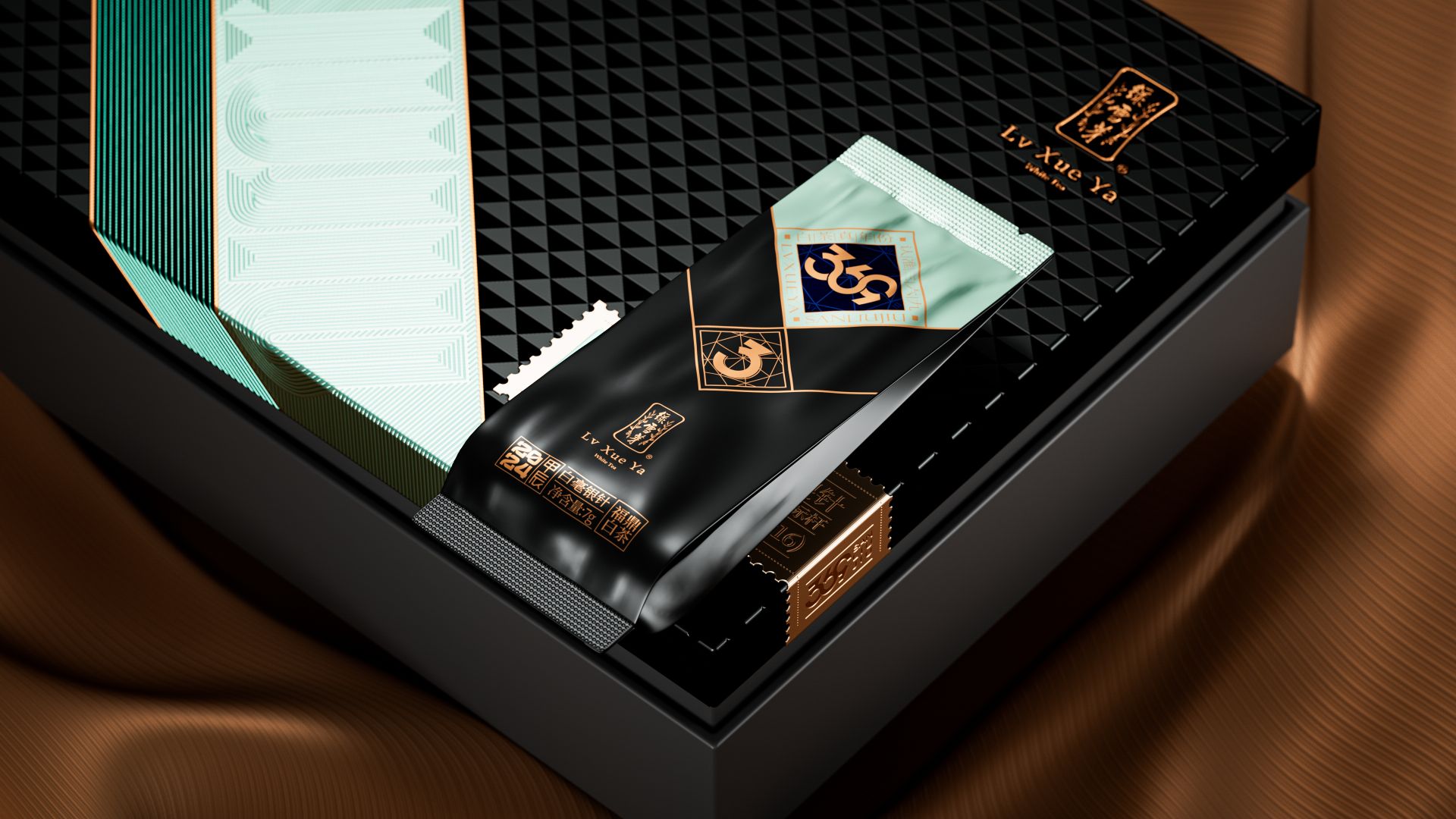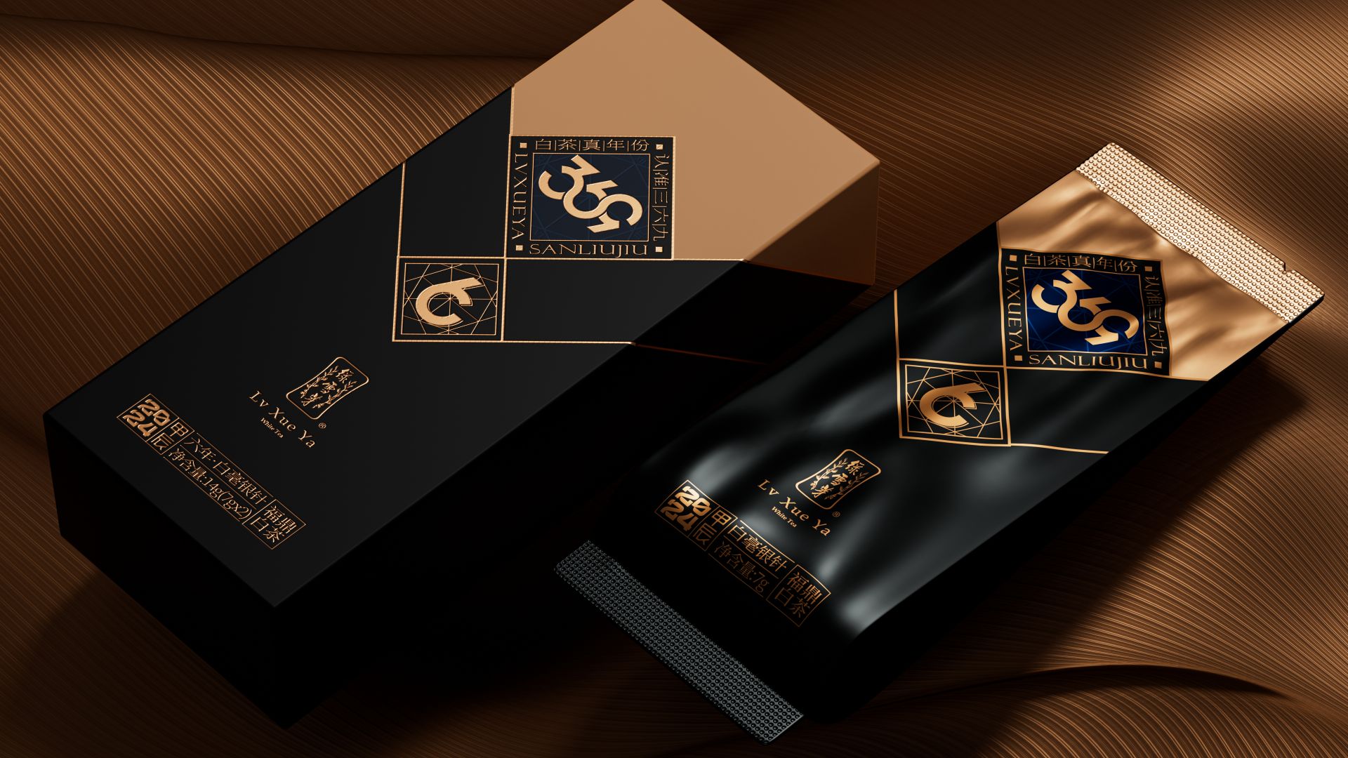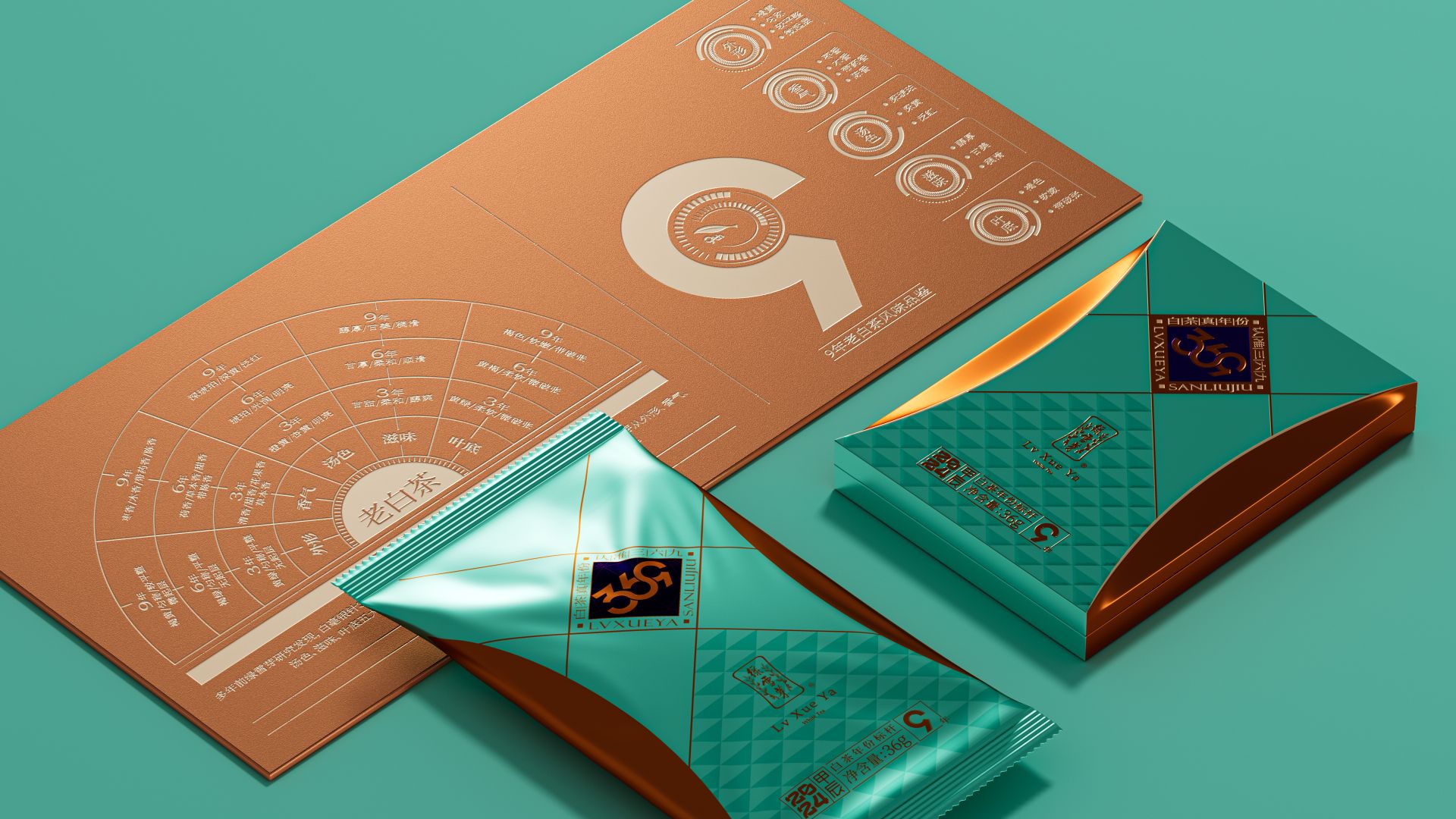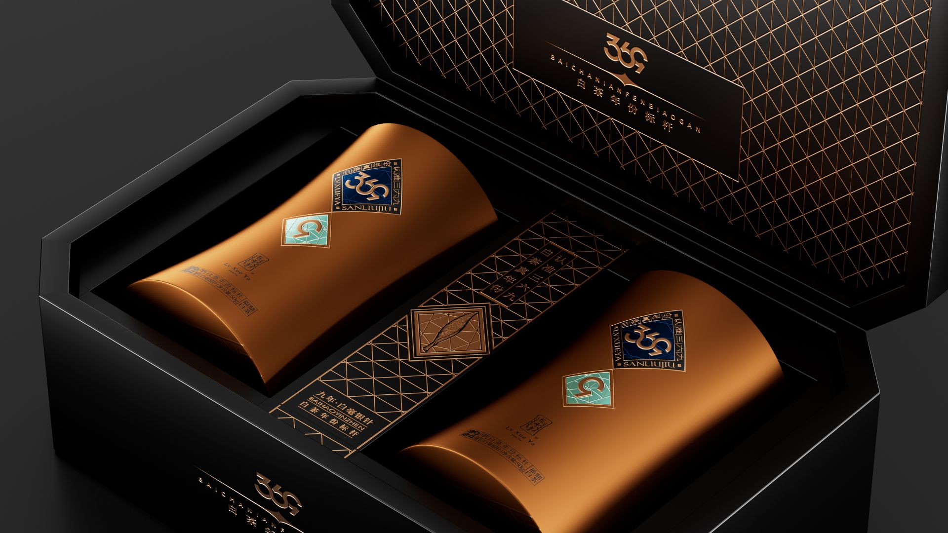 我们为绿雪芽精心打造出一款在现代语境下具有划时代意义的包装。369系列是绿雪芽首创老白茶3年、6年、9年的年份标杆。盒面运用现代极简设计,直观表达数字符号,在品牌蓝的衬托下更加耀眼。每一个数字都仿佛有生命,诉说着白茶历经3、6、9 年的沉淀与凝练。字形设计巧妙借助数字的线性相似处与印章的几何图纹相组合,来表达光阴的意涵。那古朴的印章形态和细腻纹理,如同庄重的守护者,是时间的纪年,更是岁月的鉴证。它如同一份被加盖时间印记的宝藏,等待着懂它的人去开启、去品味。