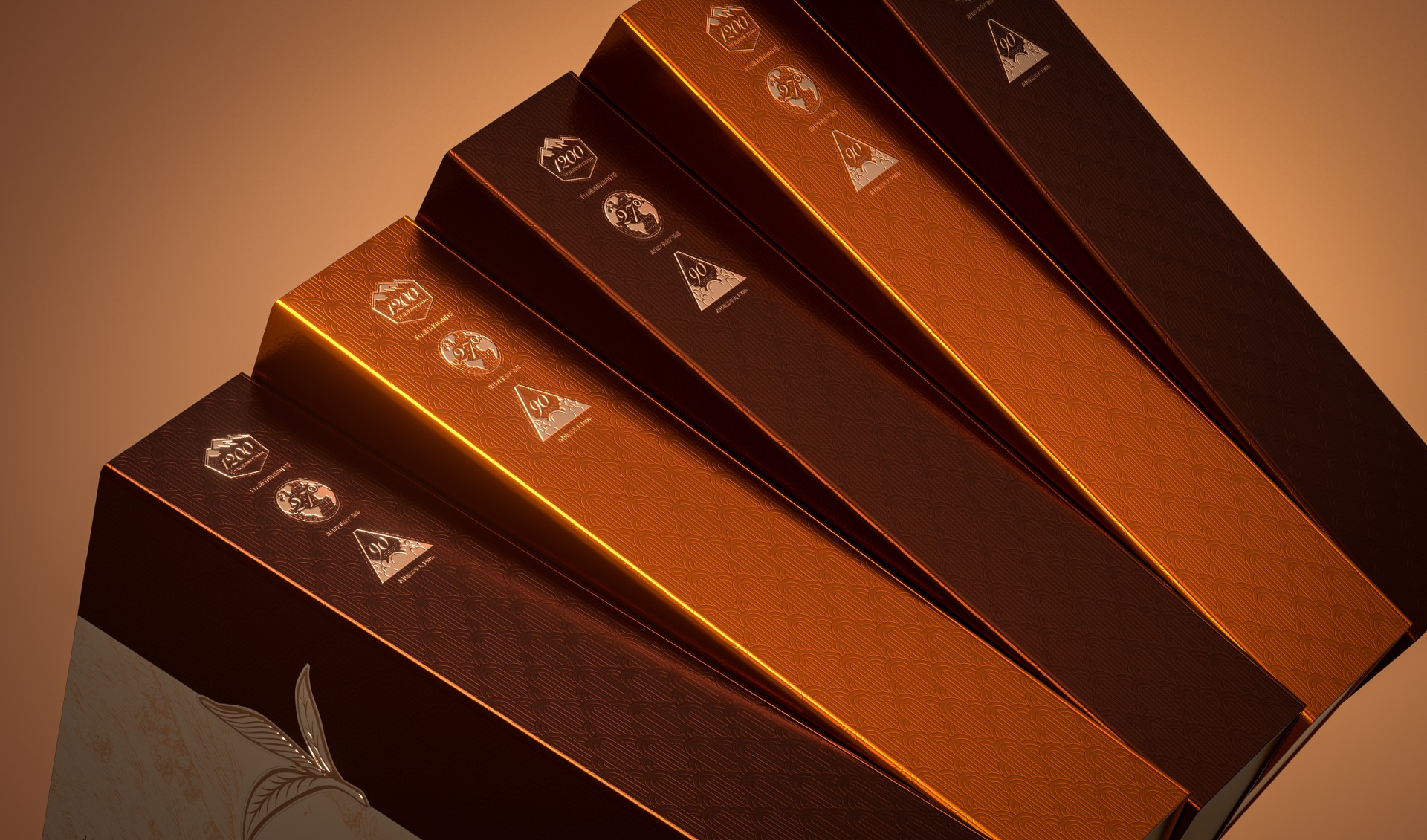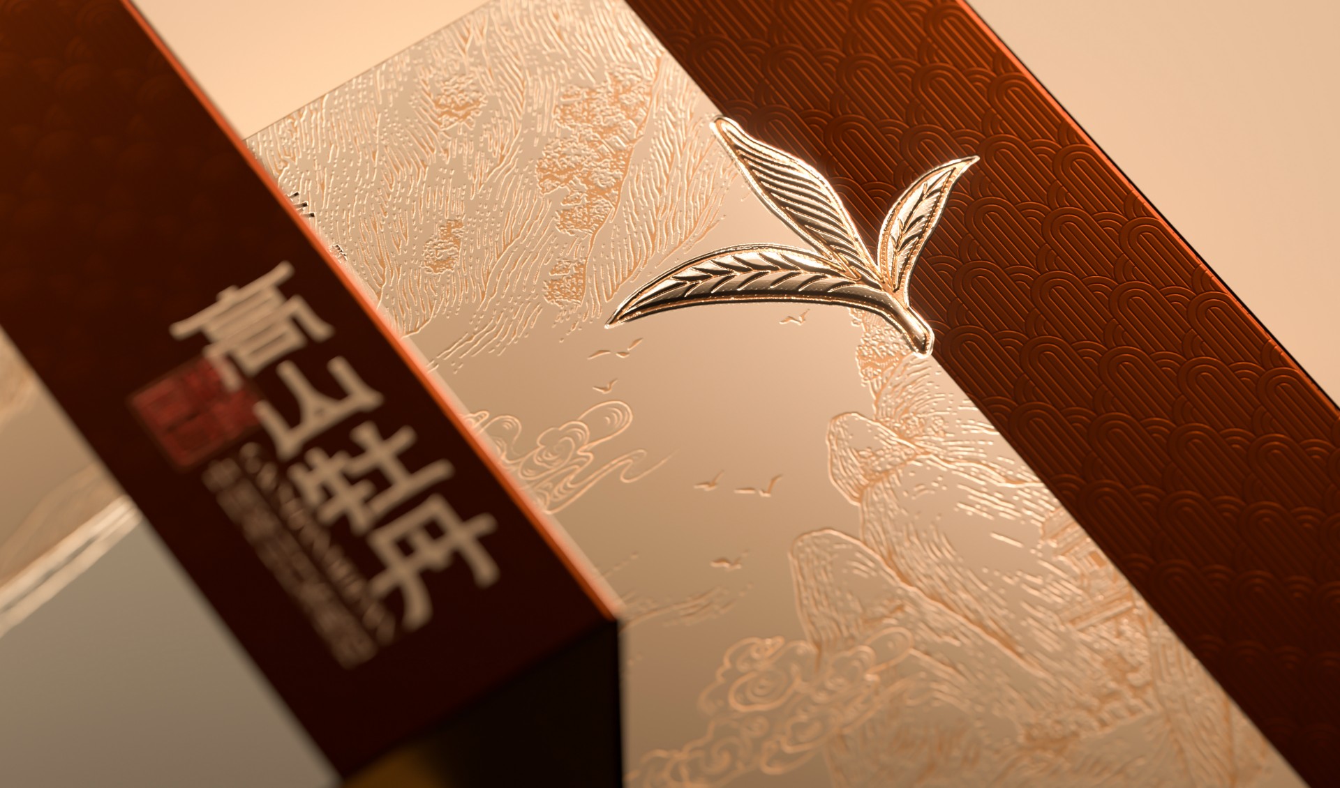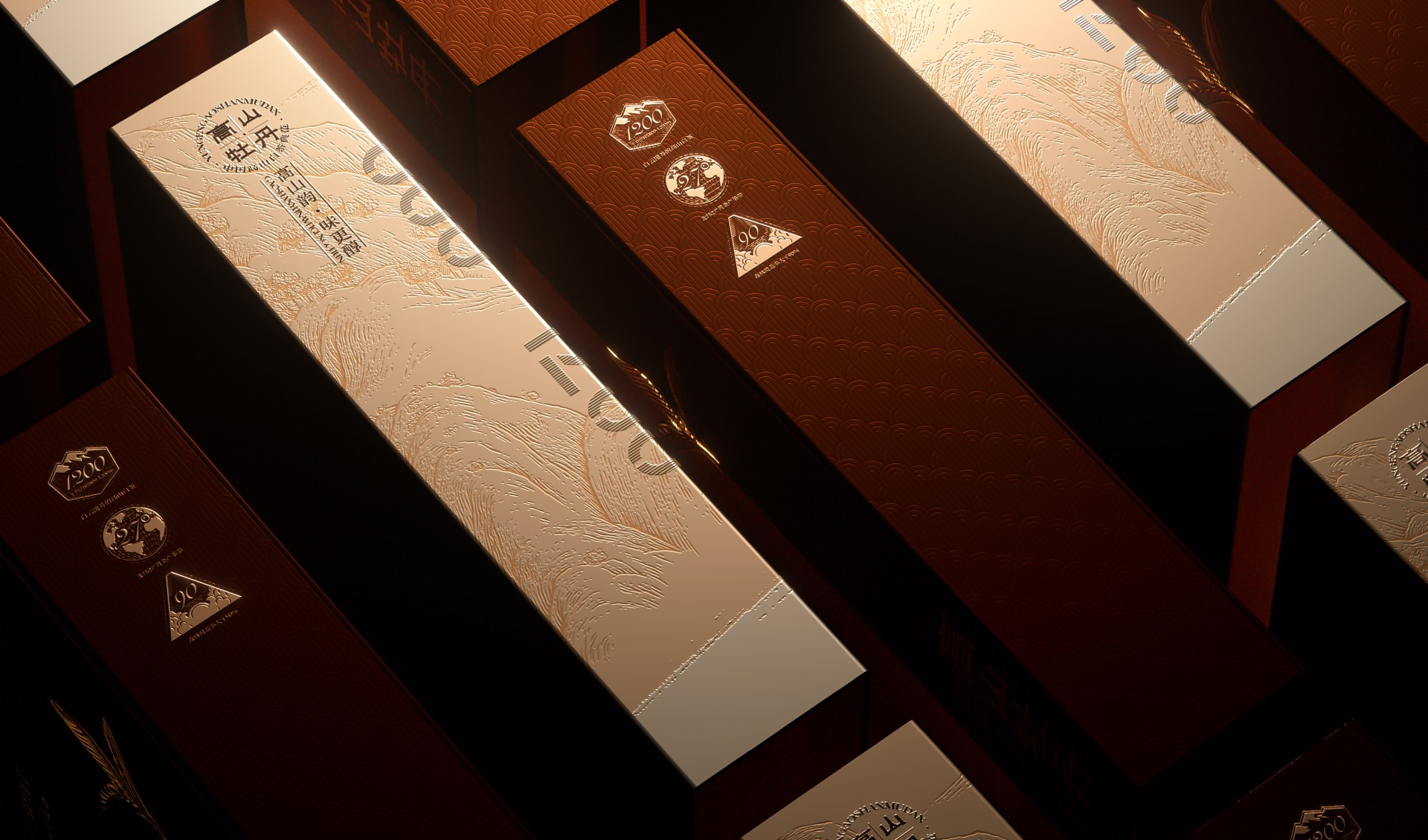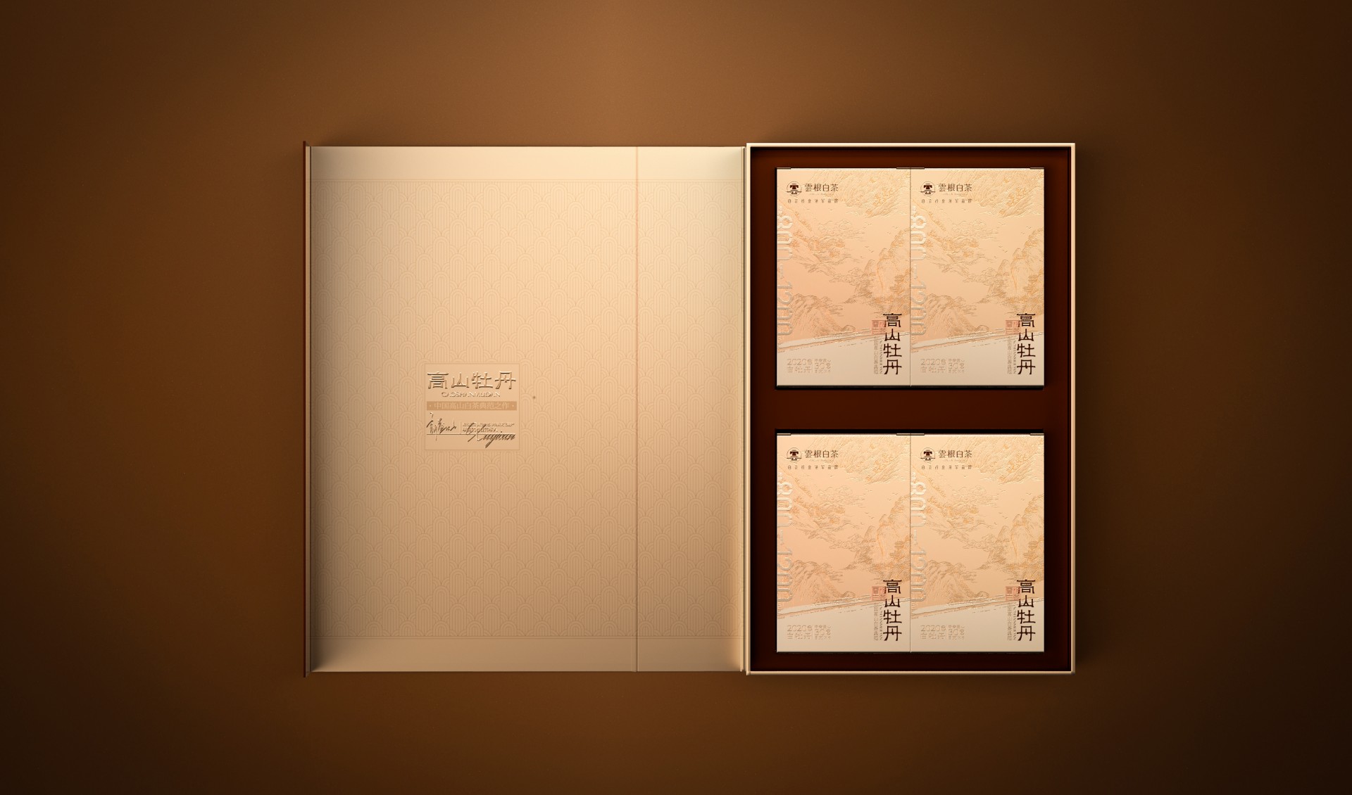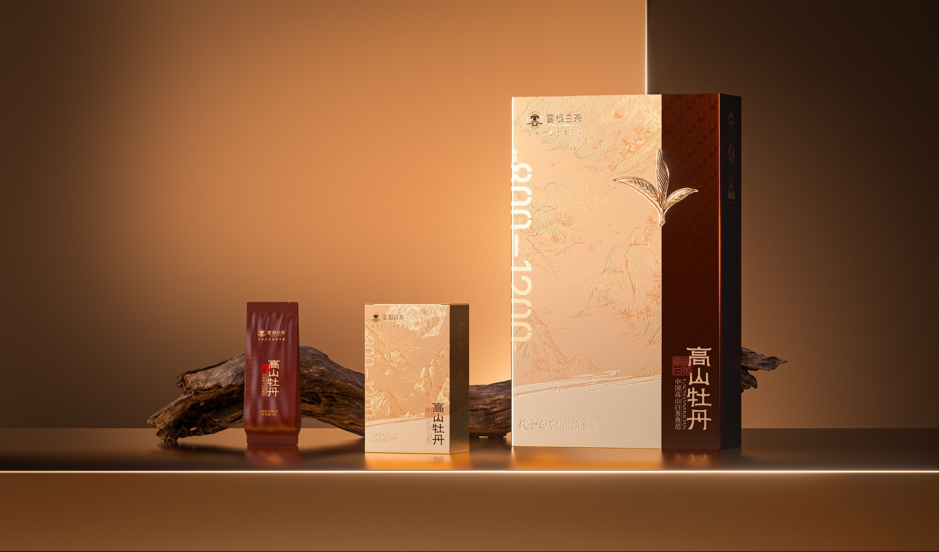 将山水覆以平面化表达,通过奇峰、雁群、青山等元素,动静交织,重现空灵磅礴。用精致细腻的线条勾勒出光影的诗篇,洒落于香槟盒面,与温暖的光线碰撞,迸发出独特的质感。创意使用立体茶叶设计,于三维空间延伸立体诗画空间。在举杯换盏的间隙,对话高山灵魄,品味高山牡丹不凡的品质与风骨。
