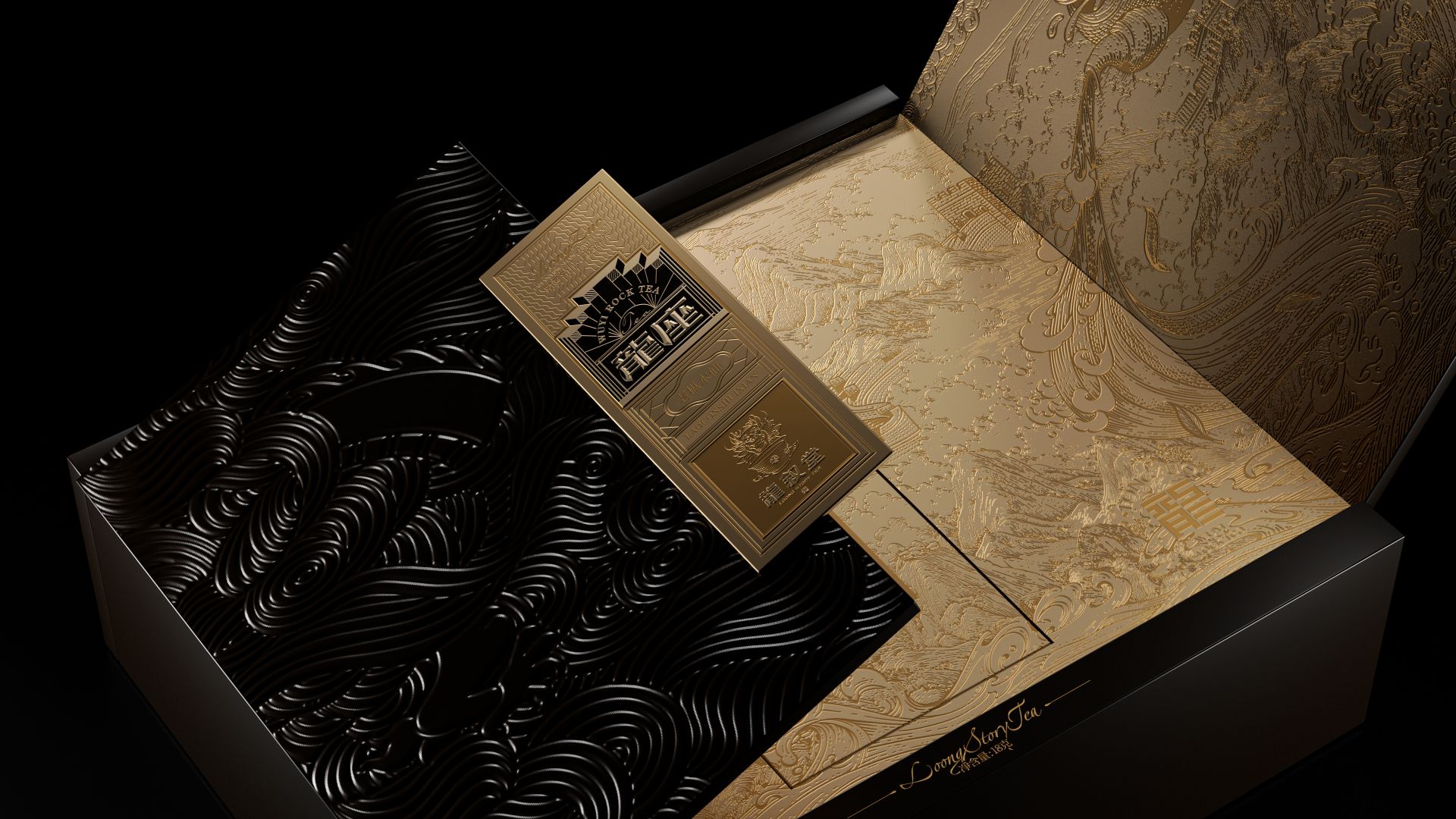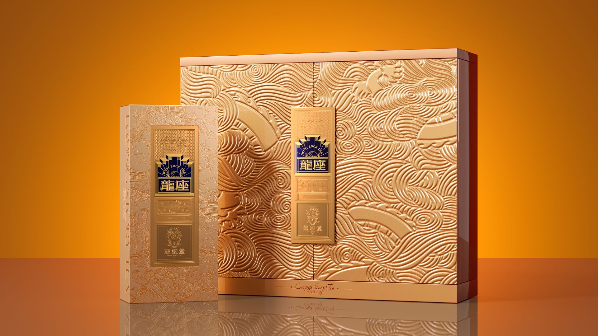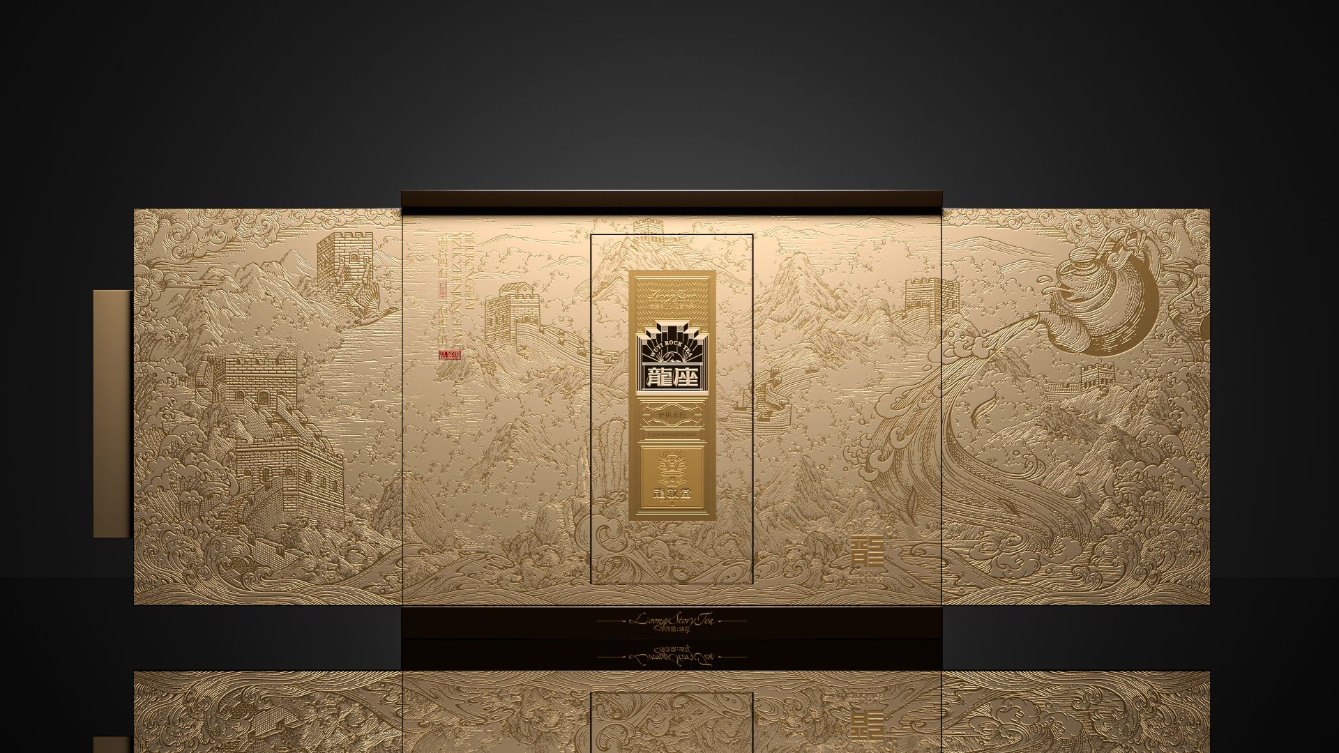 名山茶顶奢典范,以雕磨艺术品的精神,来设计一款茶。主标识由龙椅与天阶演变而来,将二者融而为一,加入现代化的几何演绎,便是龙座能够一眼区分的产品标识。围绕着主标识徐徐展开的,是礼盒封面的底纹。我们以传统文化中的“意会”手法,掩映起真龙的身姿,只在云雾之间,若隐若现。正如古语所说“神龙前首不见尾”,藏于云雾间的真龙,也恰如武夷岩茶神秘莫测、耐人品评。