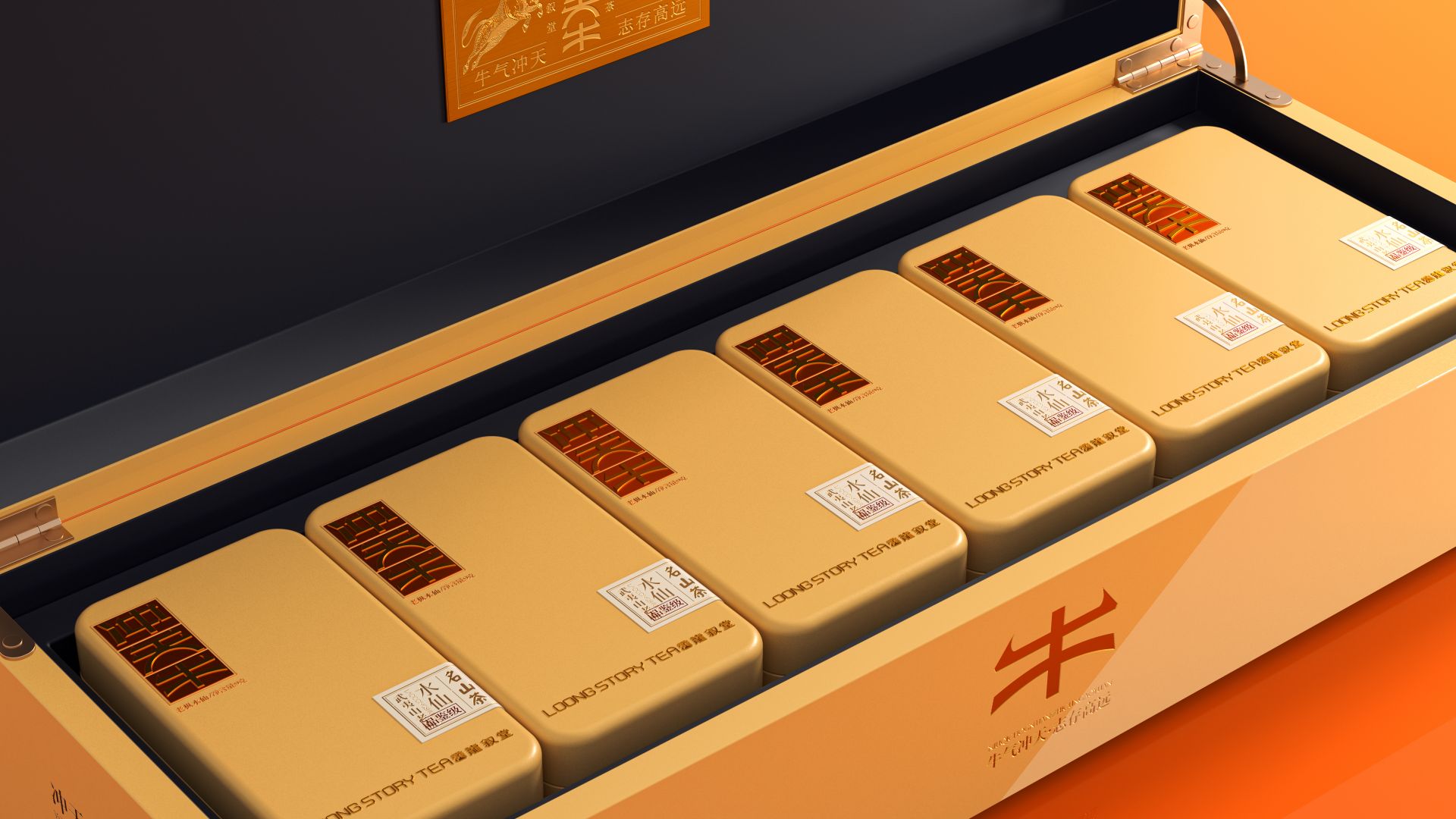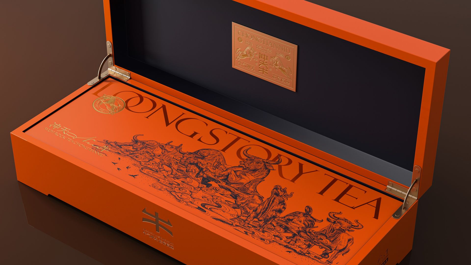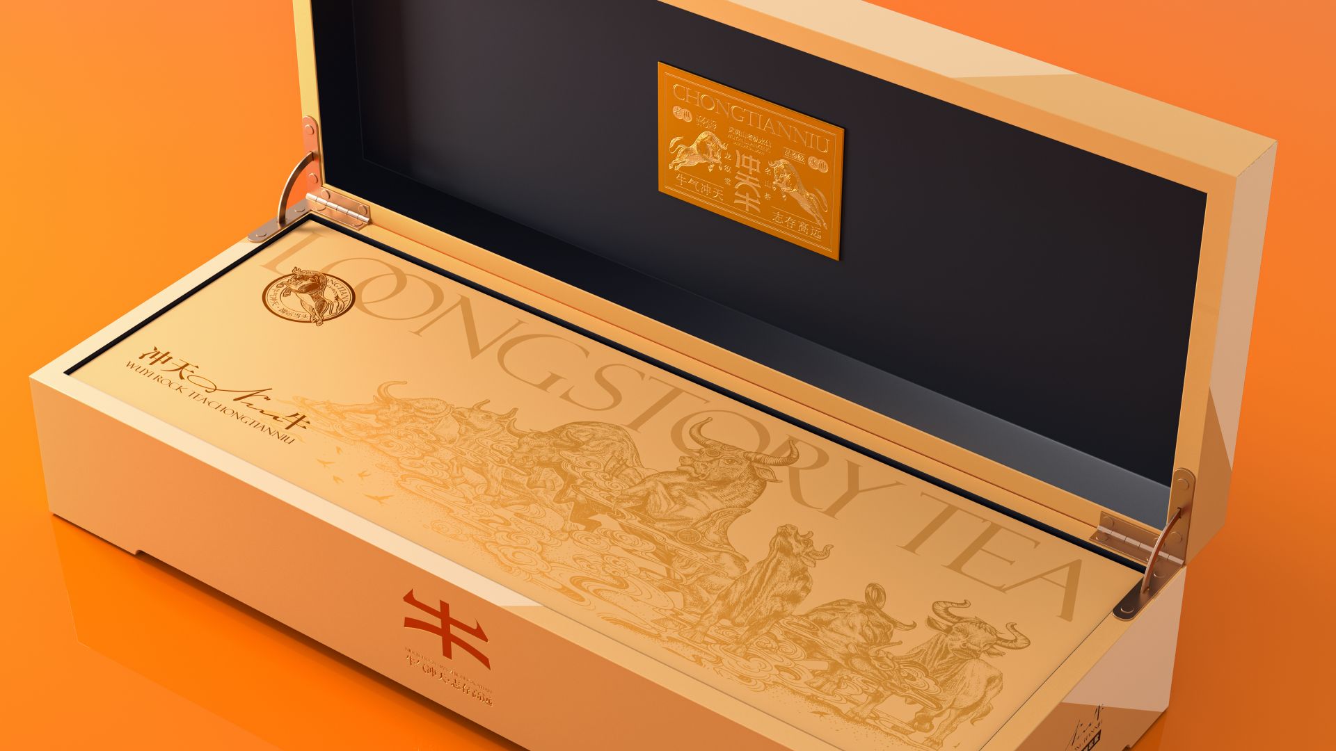 在冲天牛主标识的设计上,我们借鉴了自然界中牛角的弧线与构造,使标识更具张力,更有故事内容。而主图案以工笔绘画,辅以名画《八骏图》的奔腾气势,重新勾勒出一幅源自传统、立于当代的《冲天图》。牛首冲天,是桀骜不驯的精神,也是气吞牛斗、牛运亨通的美好祝愿。此外,我们特别设计了冲天牛铭牌与冲天牛ICON,以矫健而富有生机的“双牛”图像,表现金牛昂首、蓄势待发的临界动感,隐而有蕴的肌肉线条,正如牛栏坑肉桂醇厚甘甜的馥郁滋味,浓强而绵密!